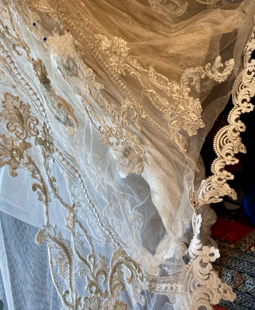 Once the net layers were adjusted, the lace was repositioned and reconstructed, allowing the hem to fall naturally back into place — as though it had always been designed that way.